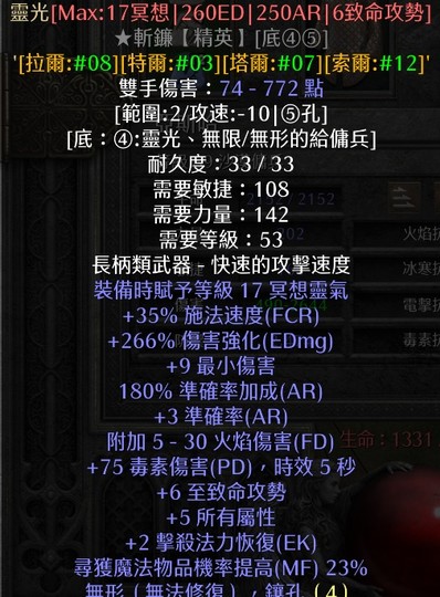 【S13天梯DLC】術士好物17冥想+6致命(底材無形15ED、3精準)