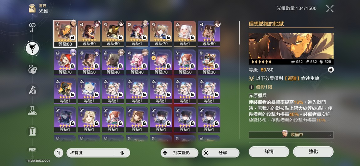 【女、62等、10金角、6金專】archer0+1 花火1+1 盾丹0+1 昔漣、火花、爻光助你打4.0 劇情低