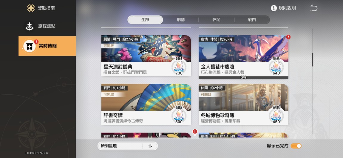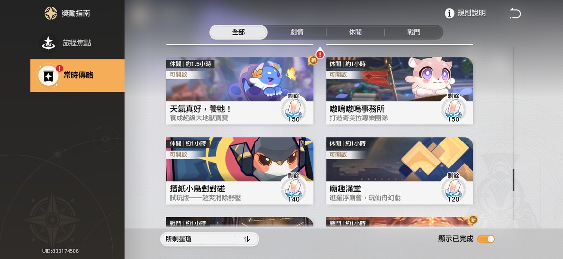 火花01爻光遐蝶大黑塔靈砂翡翠花火紅A知更鳥真理醫生00阮梅10、多星瓊可挖,地圖幾乎沒動、二相樂園主線還沒過