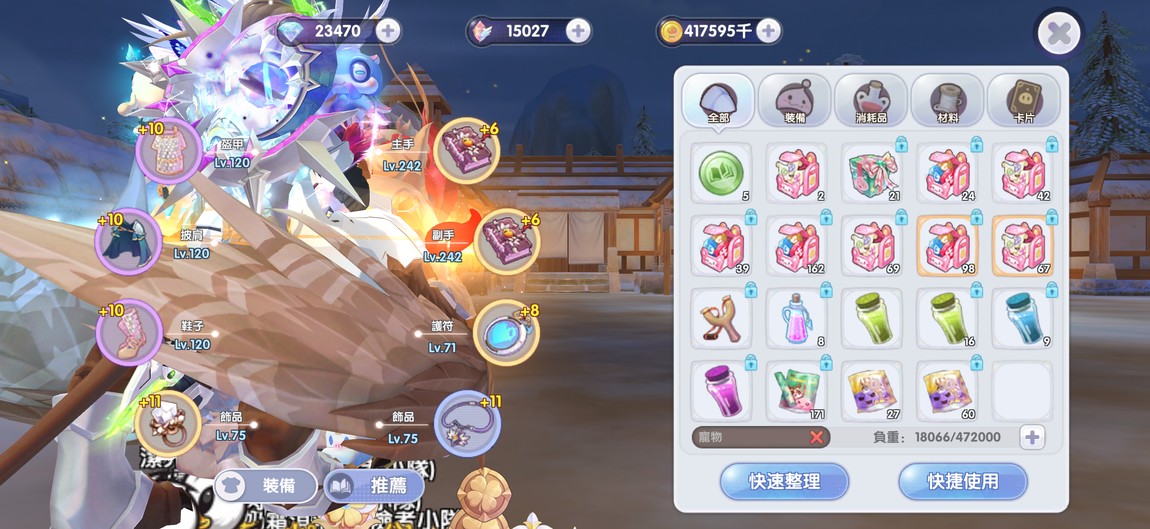 (武器3斐體、飾品9斐體、防具7吉血 2古體)