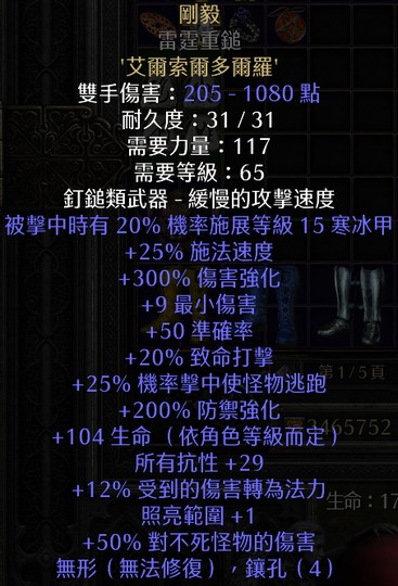 【禁忌賣場『非天梯】剛毅雷槌1.125血/29抗『術士熱門武器