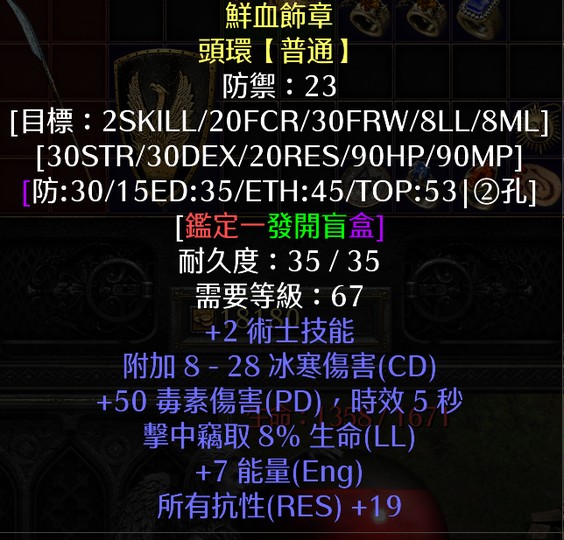 2術士//8c命//19全抗//50毒//8-28冰傷//頭冠