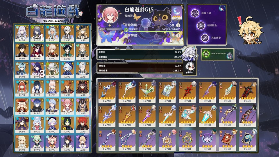 【女、60等、31金角、14金武】G15 菈烏瑪1+0雷神3+1絲柯克0+1僕人0+1 菲林斯希格雯水神恰斯卡水龍