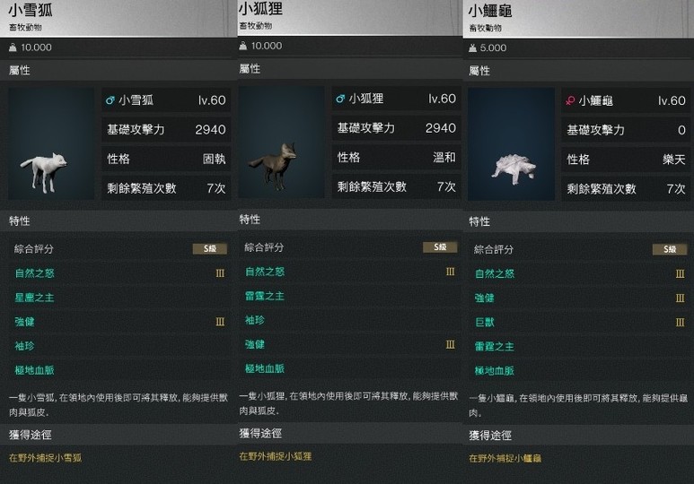 🐏動物全毛皮🐃皮毛27種/功能7種/採集5種/戰鬥28種/吉祥物13種