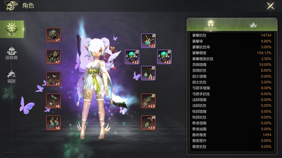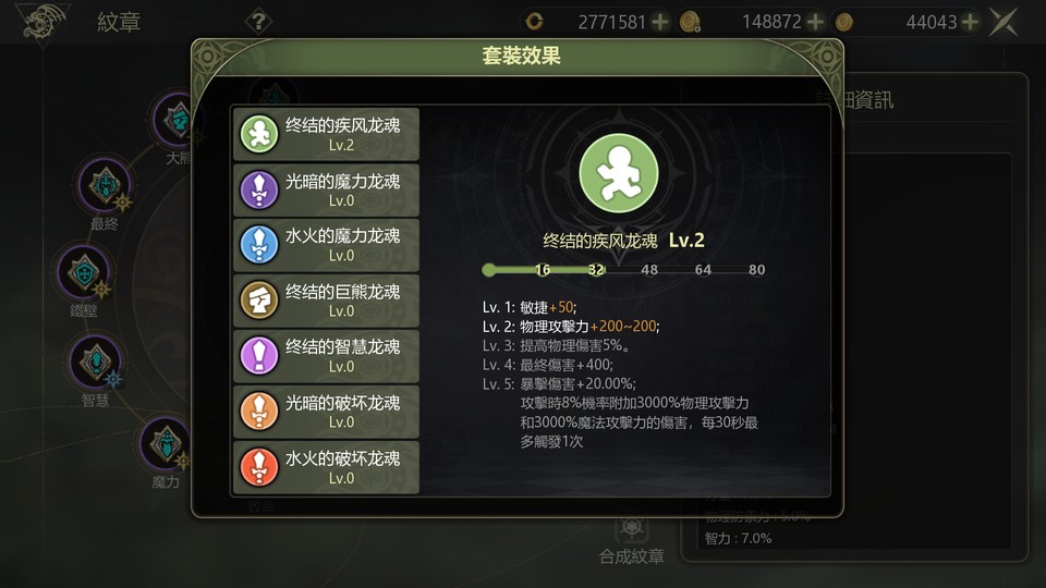 70%爆傷紋:風、鐵壁、智慧、健康、破壞、最終、迅矢連射