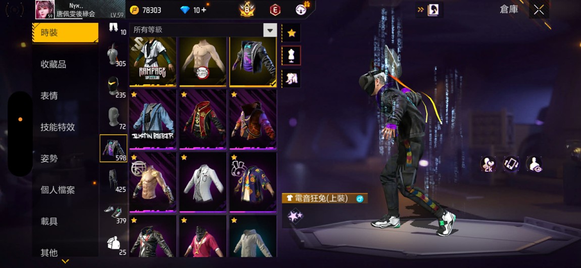 【59等】600衣精華帳,二季天線白,黑髮、V大生化武士,衣服頂,多聯名,熊貓狙,M590