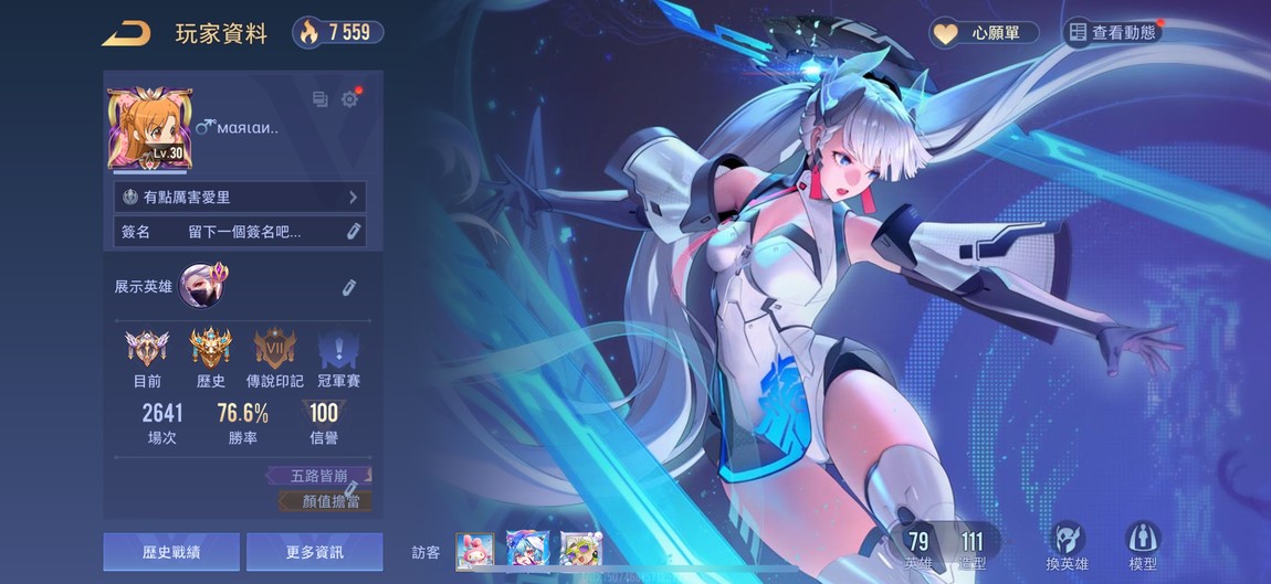【Garena帳有綁定、先鋒傳說·光影、V7、79英、111造】高勝率愛里文鰩、莉莉安沈香、瑪伽熹妃