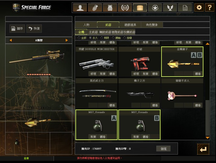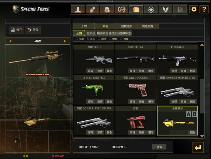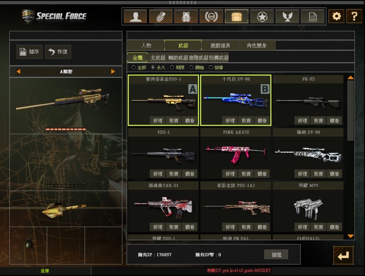 黃金PSG 十代目SV 極地SV 粉紅AK 夜影PSG1A1 鎮魂曲TAR 榮耀MP9