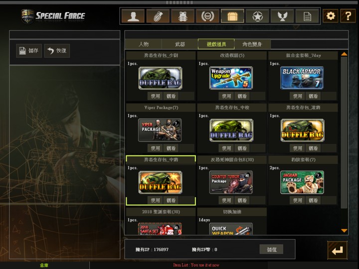 鈦合金套裝*1 毒蛇套裝*1 豹紋套裝*1 聖誕套裝*1 反恐套裝*1
