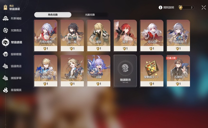 瓦爾特和彥卿 雙滿命,還有2個旅伴金靈 和 6個光錐碎憶 可換日後更新商店的 限定角色和五星限定光錐。