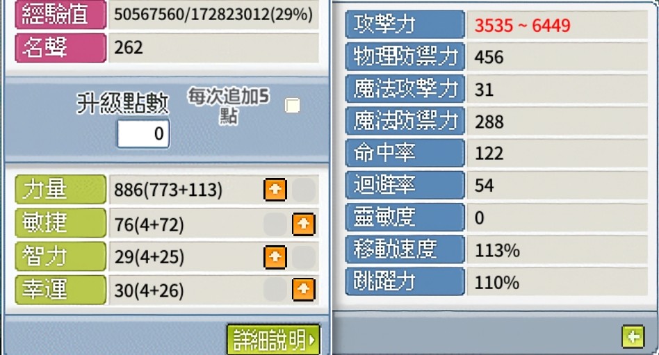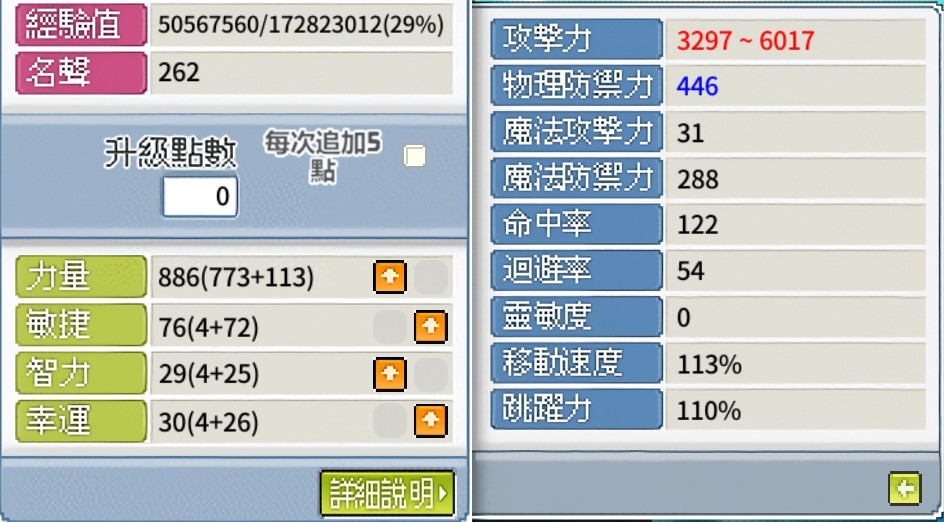 目前乾表5300,穿馬年戒指激勵表加楓祝6017,雪表加楓祝6449,有+9炎盔,5力11攻手套,普拉三件套,命中裝有46屬套服,全穿命中裝加天祝命中有205,拉圖二階也能幫打。無雙劍武30,進階鬥氣30,格擋30,鬥氣爆發沒解(用不到),拉圖腰帶已過一張腰力60%還剩兩卷,活動洗血洗魔全都跟到,也有麋鹿騎寵。寵物技能123456,內含8000w幣跟10幾組冰棒跟活水還有100雪可供使用。穩定兩刀骨龍,魚屋穩定10分50w幣(無幸運機),最重要的是這帳號打過兩個日鏢一個雷鏢算歐。 有興趣者可提問,價格可談,勿大刀。ps.賣出之前會持續提升等級~