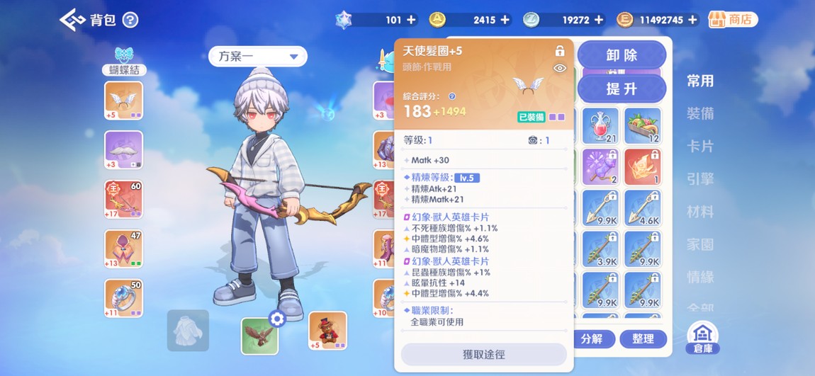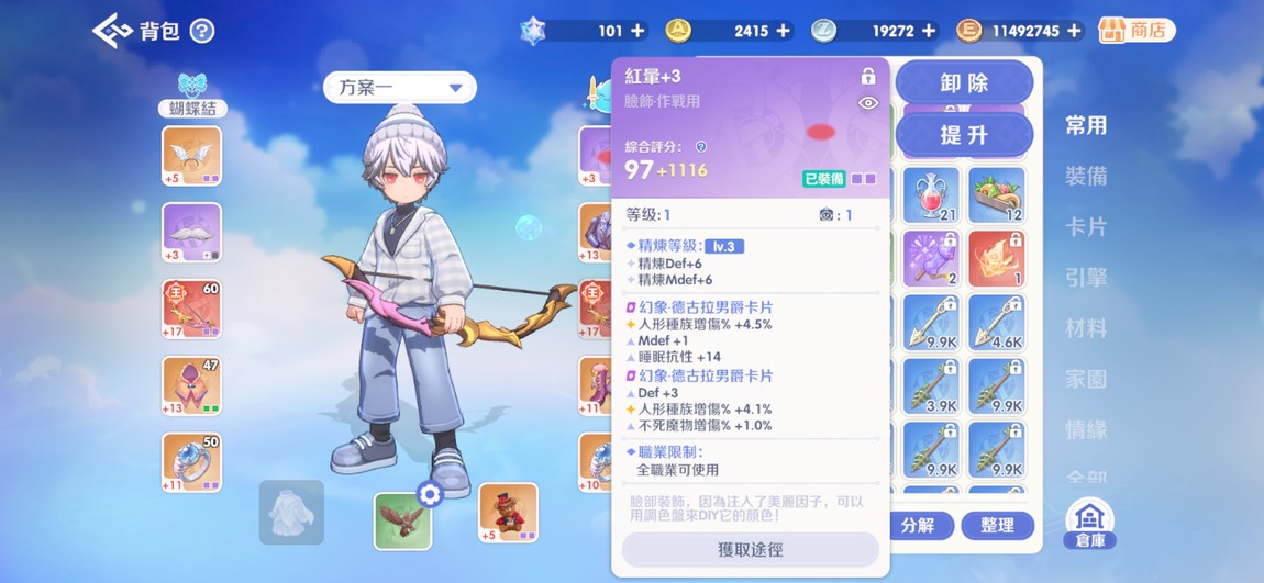 紫卡基本一套都有 邪弓2 獸弓4黑狐2 海葵1
