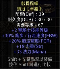 S13 聖騎士 寶冠 (2技能 30跑 20施法 18力 33法力)