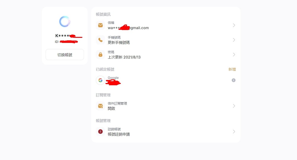 物品種類: 帳號