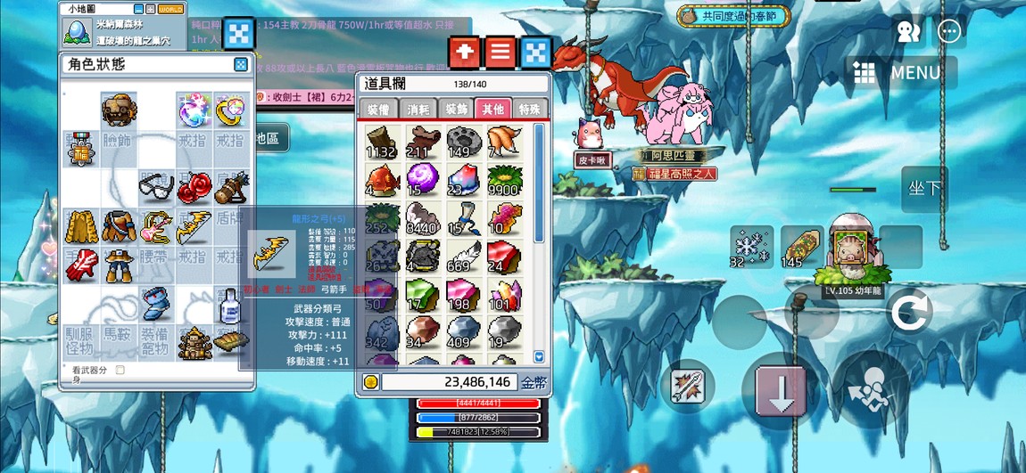 133箭神 有炎虧裝備如圖 還可以 13力虎披風