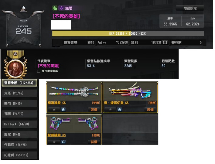 【19史詩武器、89王牌武器、62王牌角色】19史詩粉稱馬神全包7超越精靈血性藍蓋搖滾紅槍全包GS系列全包~X