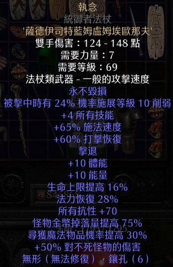 【禁忌賣場『非天梯】執念『無形』統御者法杖『70頂抗/28近頂法回