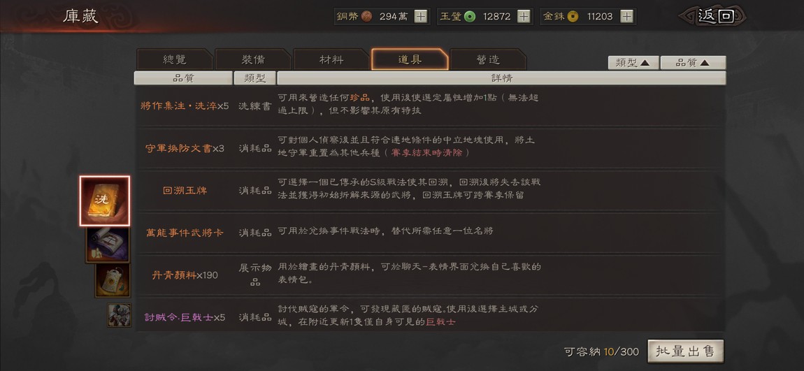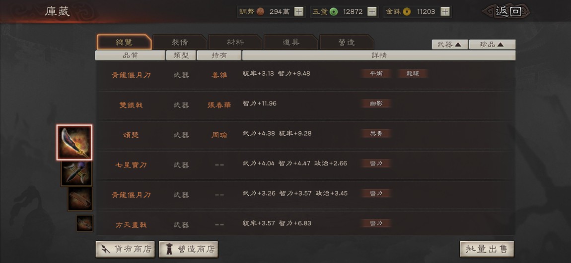 角色、戰法、裝備特技都很齊全