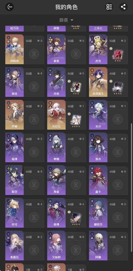 主要角色 黃泉 砂金 花火 遐蝶 流螢 卡芙卡 黑天鵝 阮•梅 白厄 星期日 其他五星角色自己看圖