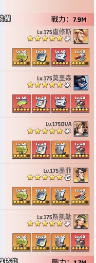 泰勒四星,飛機專武dva,斯凱勒,盧修斯30,其餘20以上。武器八個紅武,其餘都四星。可議價