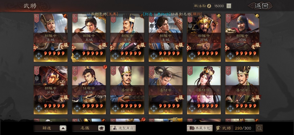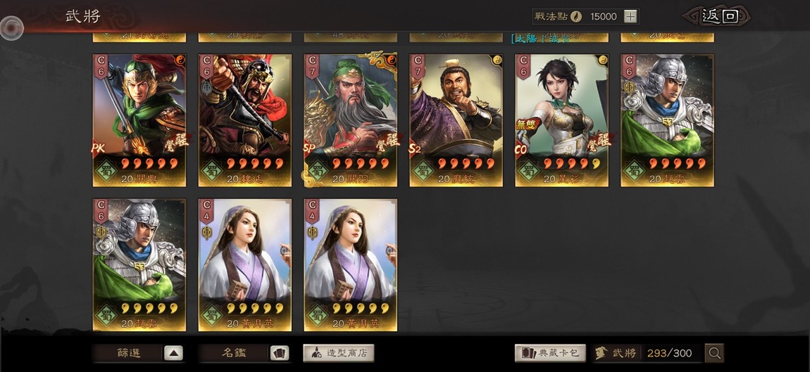 幽影、符咒、凝神、無雙、天公、神威、平衡、武聖、龍驤、虎峙、號令