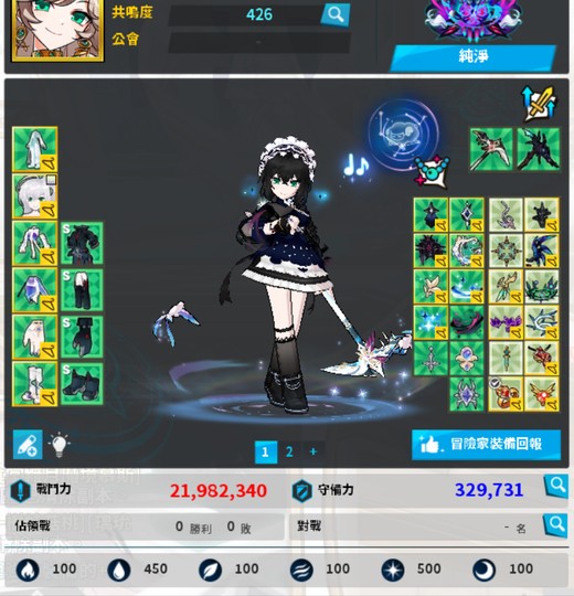 AV愛芙瑞絲:搭配純淨稱號 +泰納整套戰力約2100萬 /搭綠百億整套 1900萬