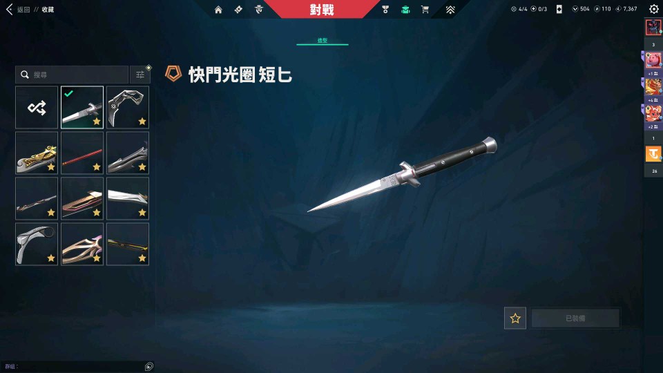 刀:25爪刀/5years beta小刀/短匕/如意棒/掠奪小刀/雙刃刀/緋金小刀/流金長劍/離子爪刀/靈花苦無/24刀