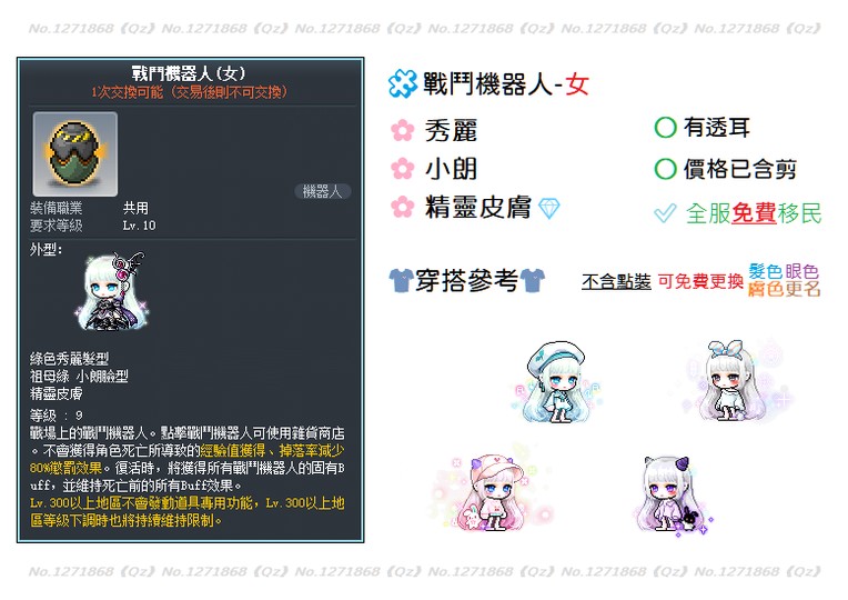 【戰鬥機器人(女)】《已整好透耳戰女》《全服免費移民》《秀麗+小朗》🍁【Qz】