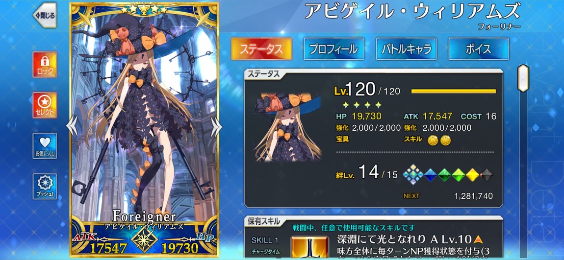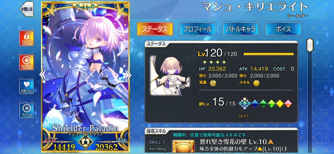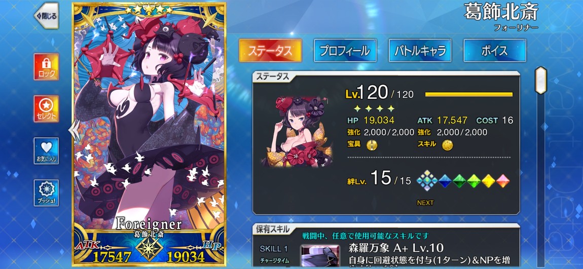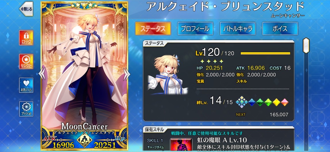 金閃閃、大公、公主、學姐、葛飾北齋、阿比、所長、瑪修均為滿配(120/2000芙/被動全滿)