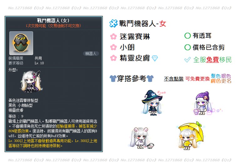 【戰鬥機器人(女)】《已整好透耳戰女》《全服免費移民》《迷霧賽琳+小朗》🍁【Qz】