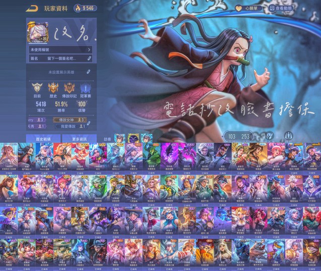 【Garena帳有綁定、鉑金、V8、103英、253造】彌豆子 龍馬風霜盡 刀鋒亞絲娜二代