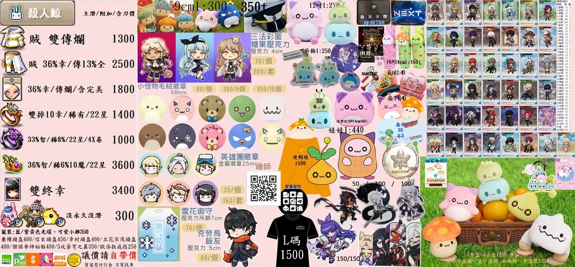 各物品價格在圖上(實收)