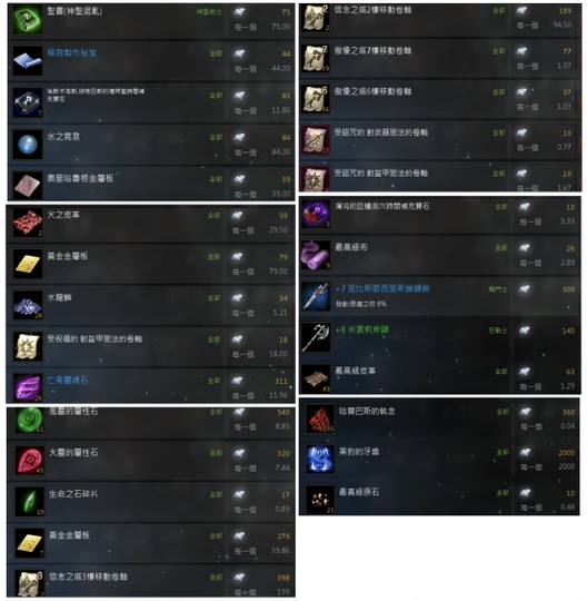 交易所有待售物資至少三千鑽