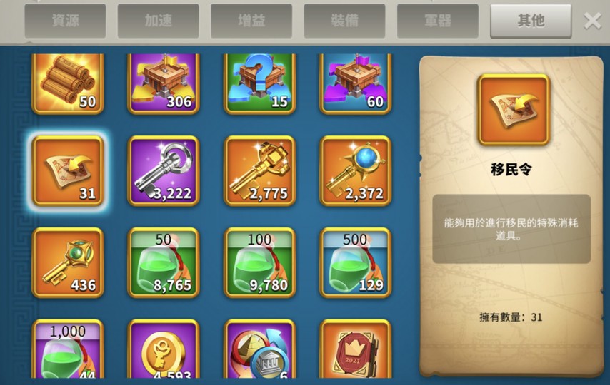金將覺醒17隻,資源加速都有,寶石全開71萬顆。有意想買可再詢問其他資訊。機票有31張另外聯盟還可以再購買21張總55張機票