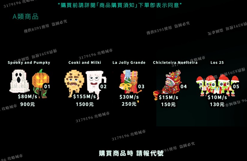 📌購買須知(請詳閱1.虛擬商品不適用7天鑑賞期,購買後無法退貨或退款。2.ROBLOX與平台內禁止第三方現金交易,若導致帳號受限,買家自行承擔風險,恕不退款。3.本賣場所販售之商品為第三方來源,非遊戲平台官方授權或經銷品項。如因使用該帳號或商品而遭平台限制、懲處、封鎖,風險由買家自行承擔,恕不補償或退換。4.若為未成年人,應由法定代理人同意後方可下單。下單即視為已取得該同意,並由下單人及其法定代理人共同承擔相關責任。5.商品將以線上交易或寄送至遊戲信箱方式交付,請務必填寫正確遊戲帳號。若因資料填寫錯誤導致無法交付或交付錯誤,本賣場不提供補發或退款,敬請見諒。👉本工作室每筆交易皆依法開立電子發票,買家可透過 發票網址 https://reurl.cc/GNRoZG,輸入訂單編號(英文全小寫)與金額進行發票查詢及歸戶。備用發票歸戶/查詢網址 https://q0663-invo.123web.tw/qibobl413148bd22ae4f5769若超過四期查詢期限,請使用手機條碼/自然人憑證至財政部平台歸戶,或提供訂單資訊由我們協助查詢發票號碼。🔸完成下單即表示您已詳閱並同意上述所有條款,請務必確認內容後再下單🔸