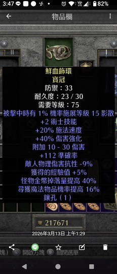 已經裝新物寶40%ed-9物抗+5經驗