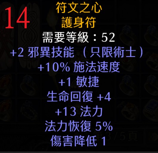 | 14 | 符文之心 | 52 | +2邪異、10% FCR、+1 敏捷、+13 法力 | 532 |