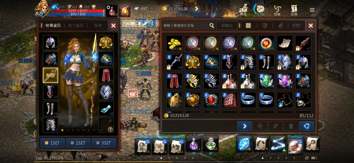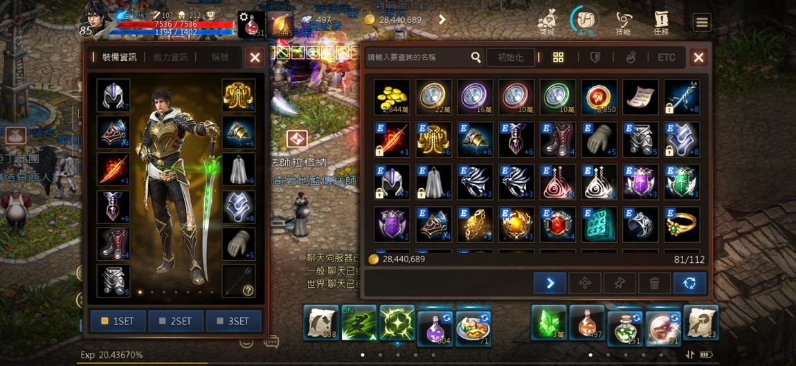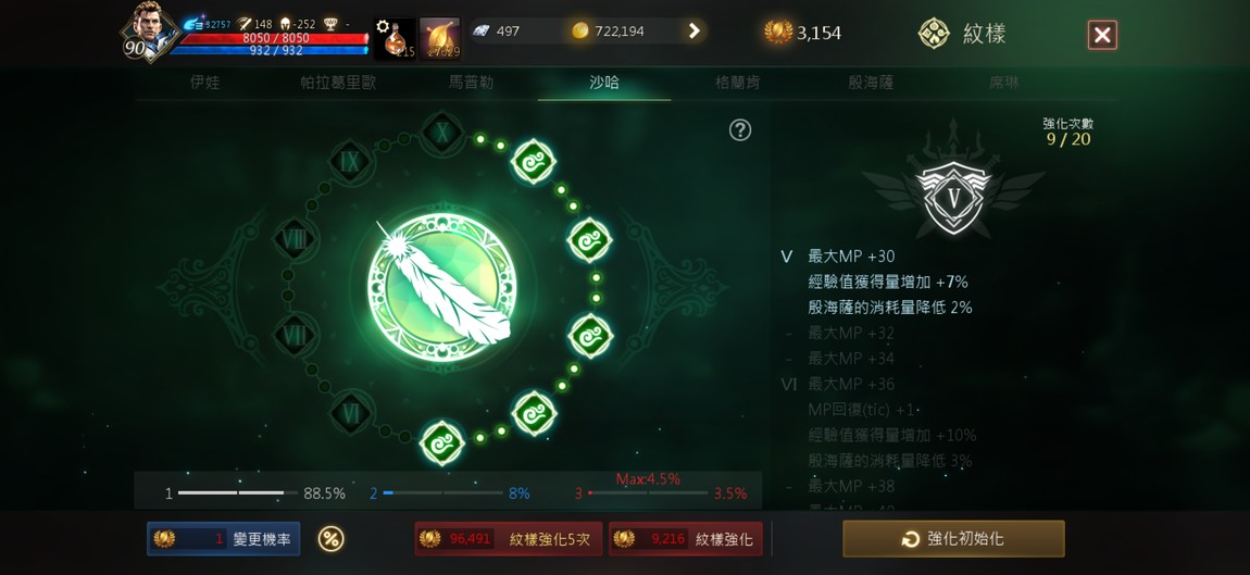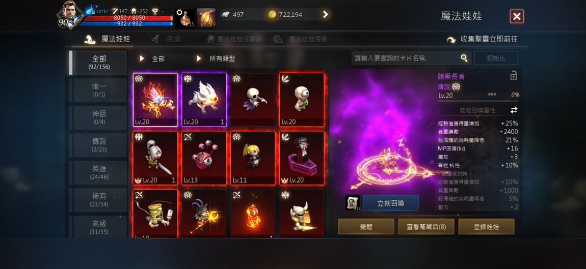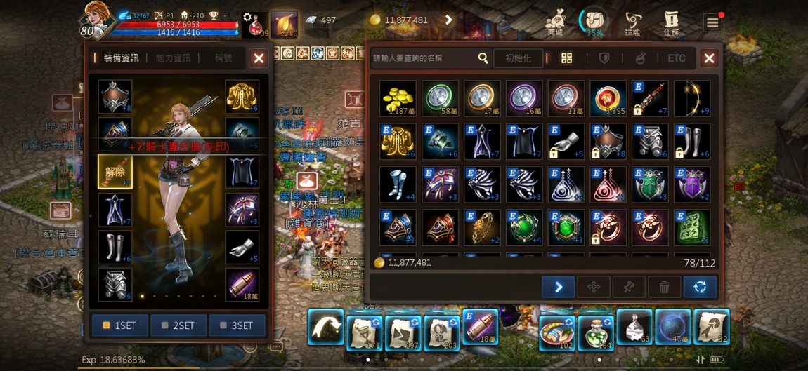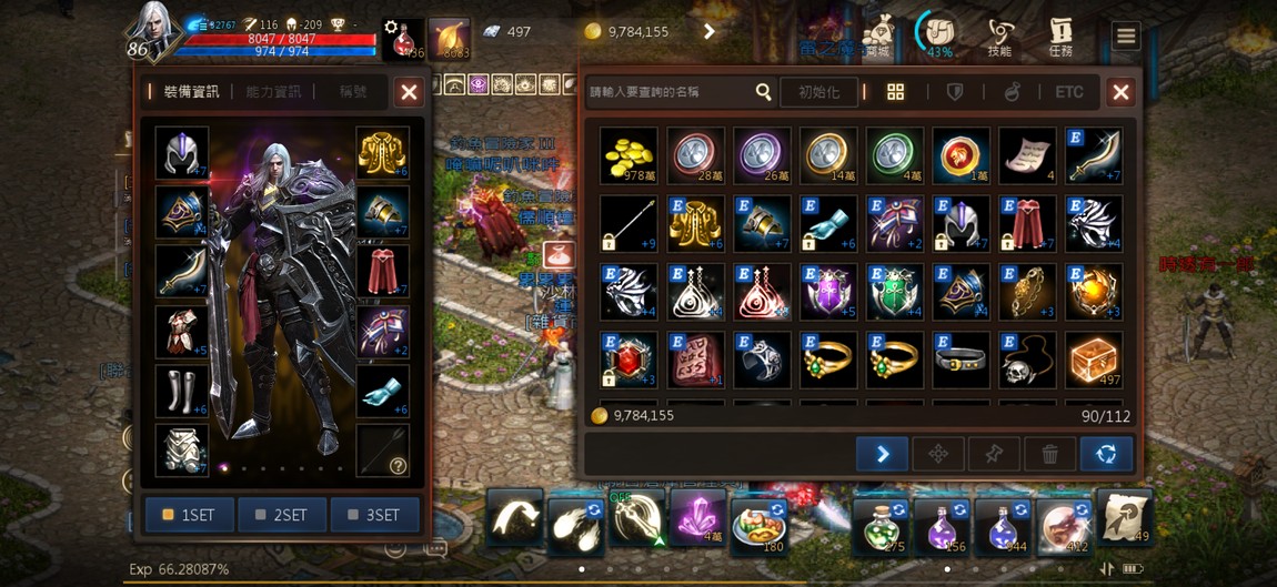 90級騎士,紫技5紅技8、攻擊147、物理防禦252,分身四隻防禦破200,紅武+7三支,紅防兩件