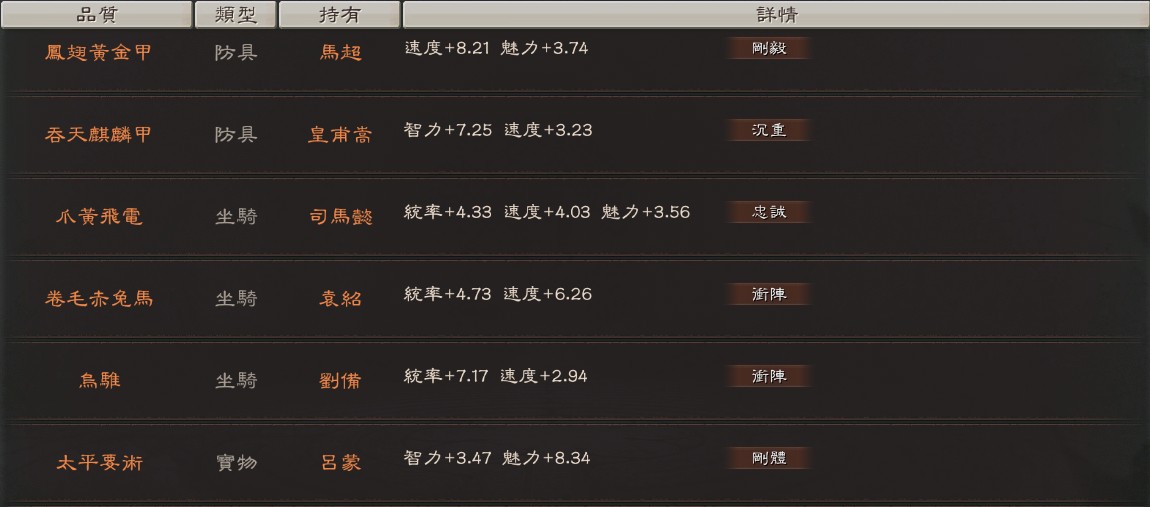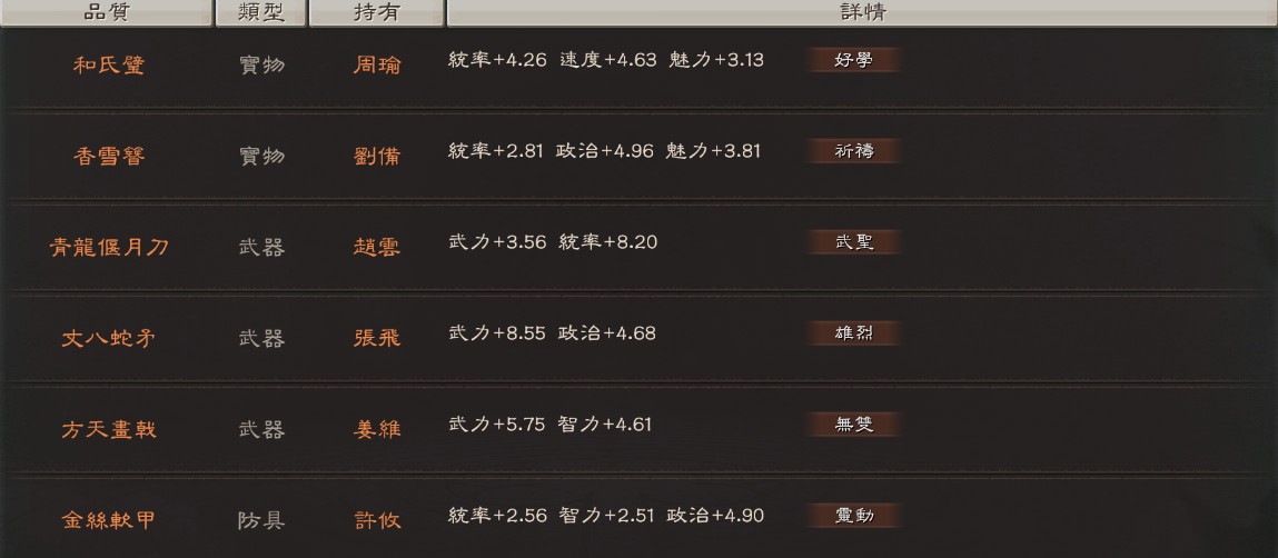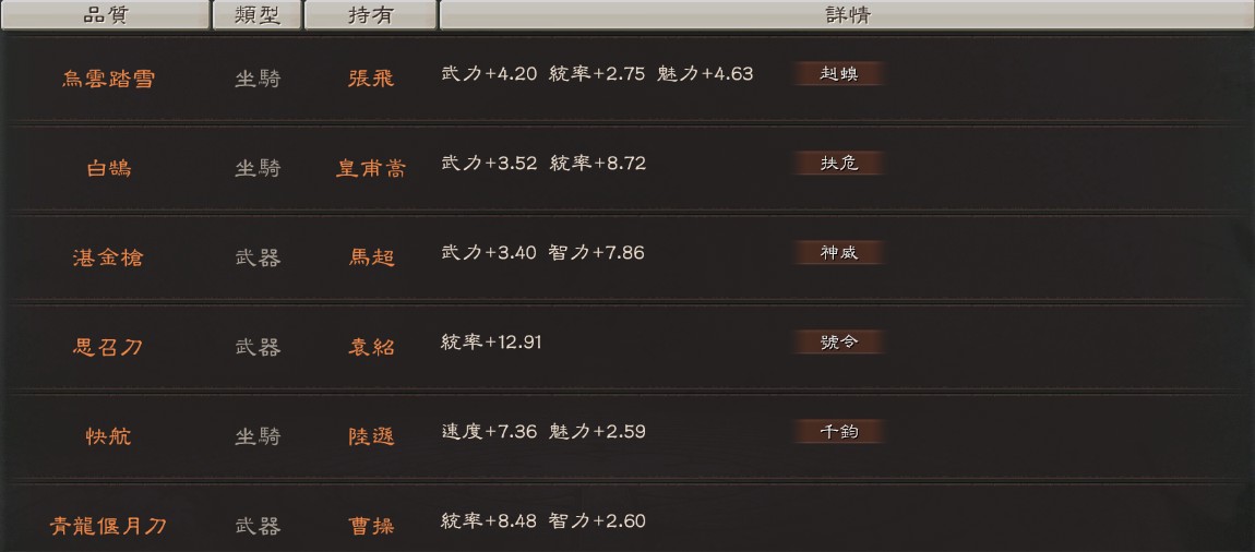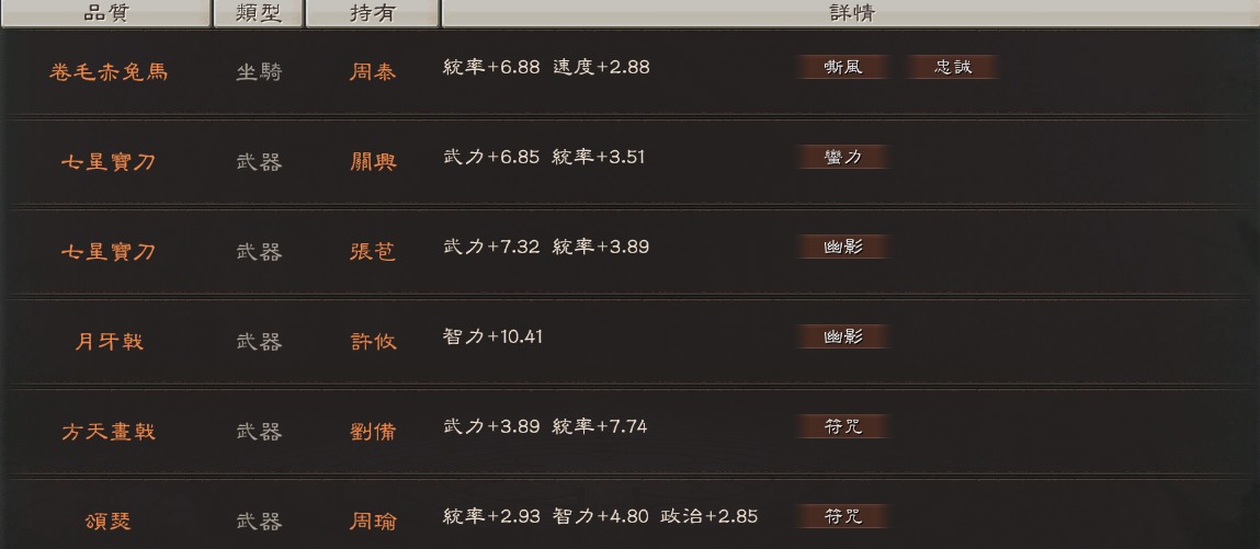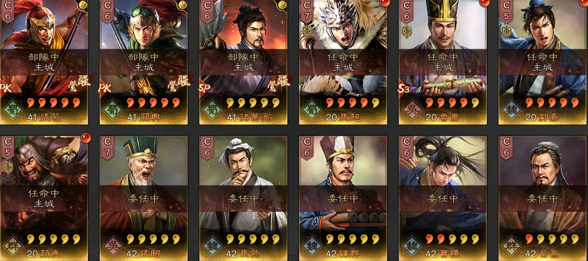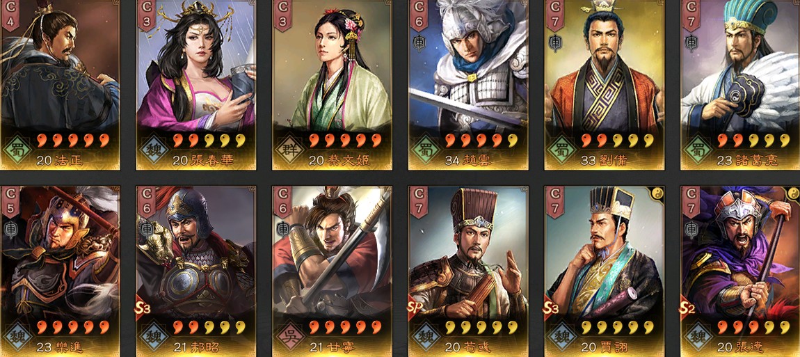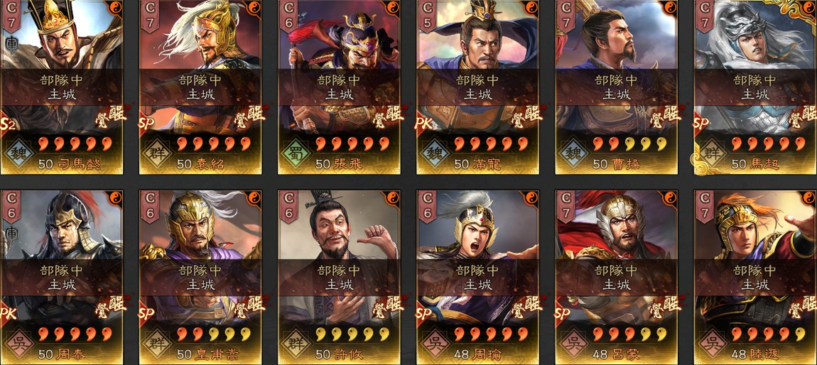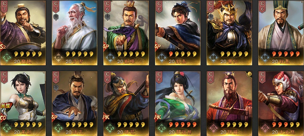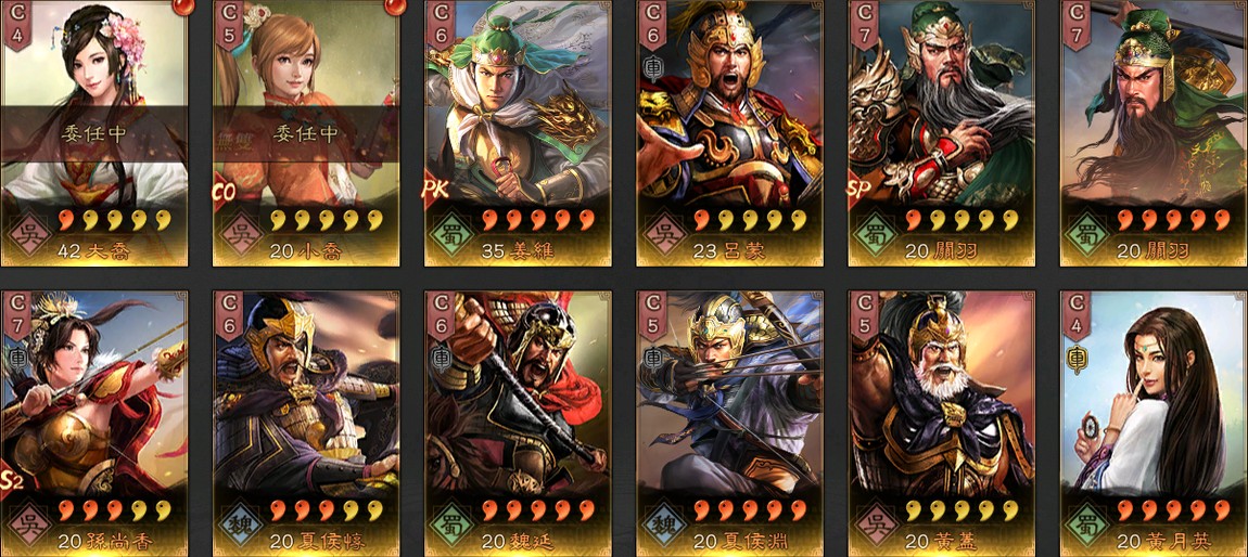 帳號許多滿紅武將