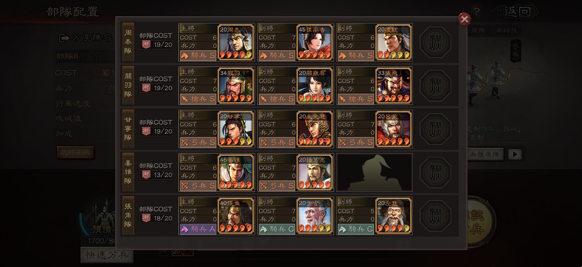 4幻神,滿麒麟,滿關關張,香騎,甘太呂,仙人盾