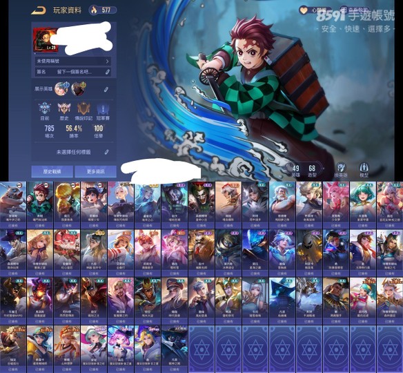 【Garena帳有綁定、鑽石、V7、49英、68造】主推善意,炭治郎,喜歡可以私訊小議