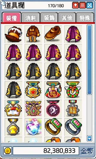除了裝備,圖片上的 (消耗品) 多少會有變動,(楓幣只會多不會少),其餘裝備等物是不會有任何變動。