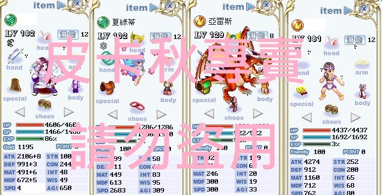 (雪貓/英雄/咒血/幽靈)(開花/水瓶/夏季服/急速)(紅龍/幽靈)