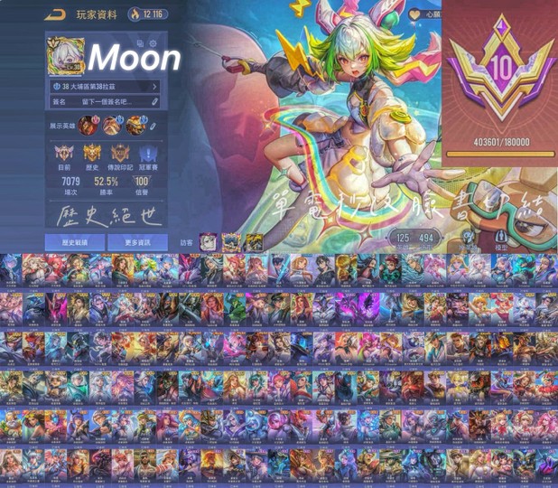 【Garena帳有綁定、絕世傳說、V10、125英、500造】女用500造大神 次元 造生 文堯 凰來 氣象 魔女 紫電 鶴羽 沉香多連動直購