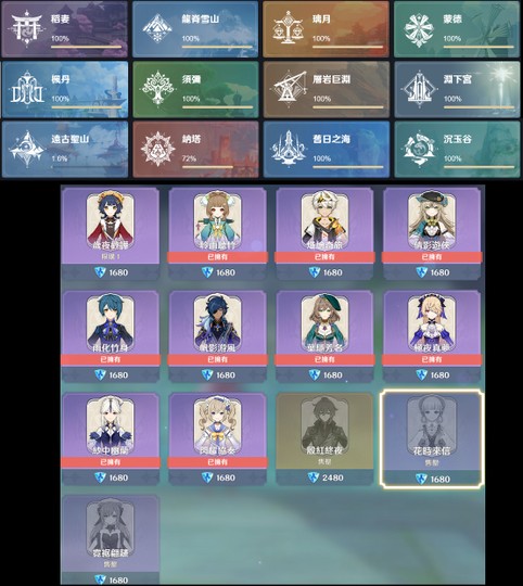 探索度幾乎都100% 還有一些沒滿