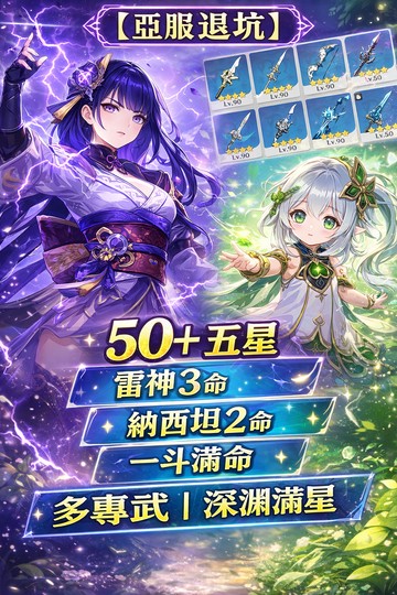 【女、60等、43金角、32金武】【原神亞服高練度帳號出售|多專武|命座角】