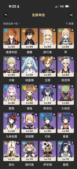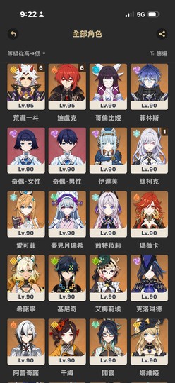✔ 多數角色 90級