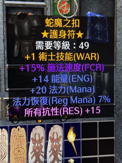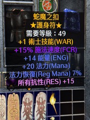 天梯術士 護身符 項鍊 +1技能 高施15 全抗 法力 末日 死呼 125 必備