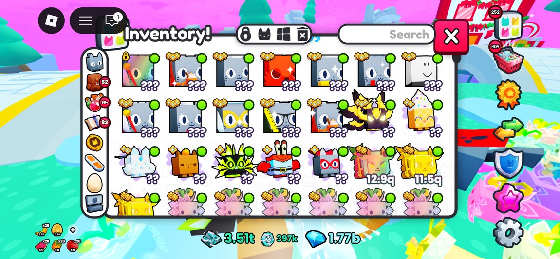 精通:藥水70、易碎品93、水果99、禮物73、寵物99、鑰匙66、附魔書80、商店89、高級寶箱99、