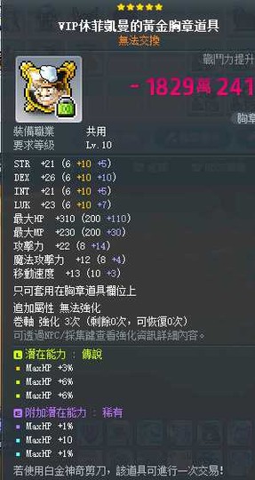 【VIP休菲凱曼的黃金胸章道具】vip休菲凱曼的黃金胸章 HP 惡復 小資 含刀